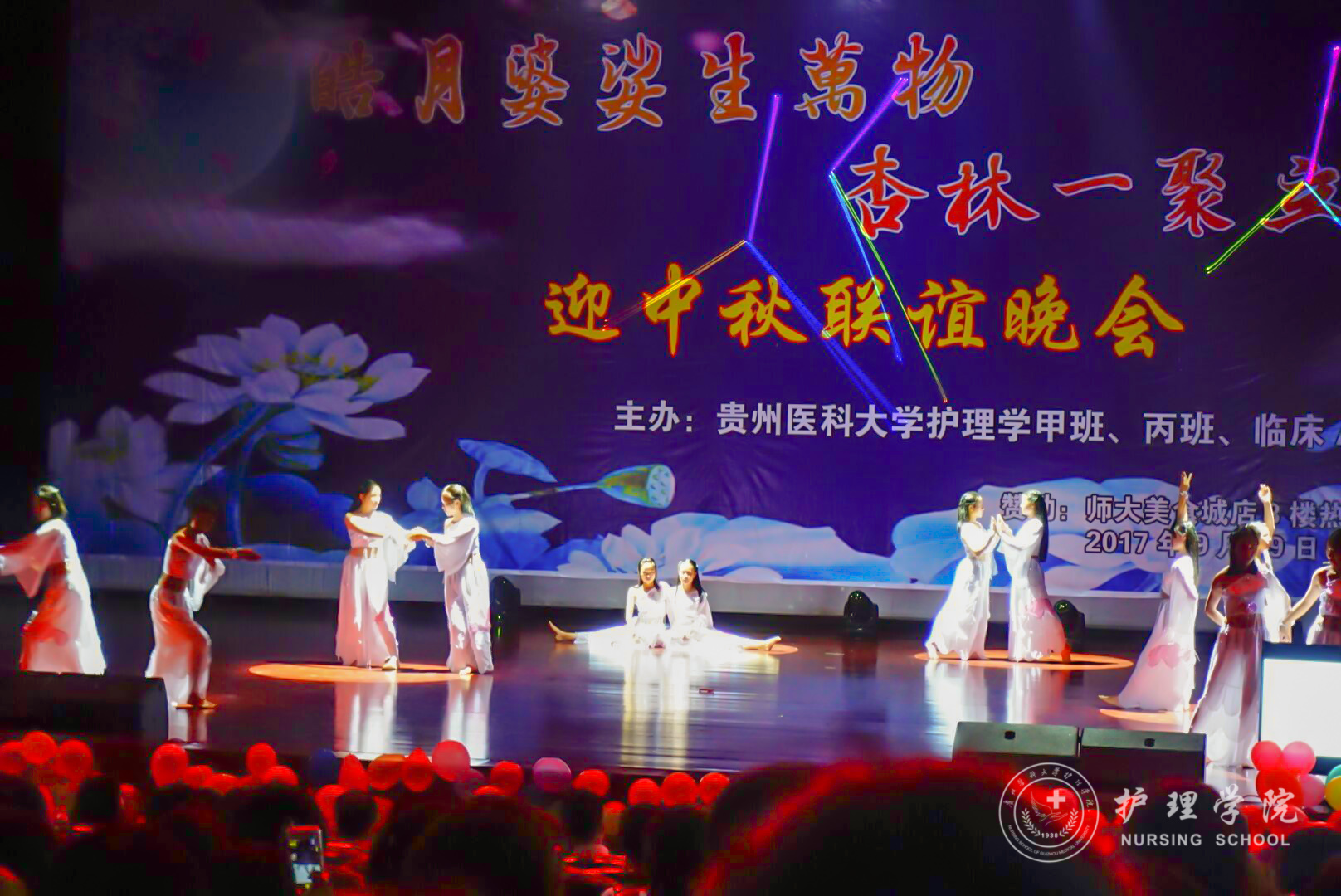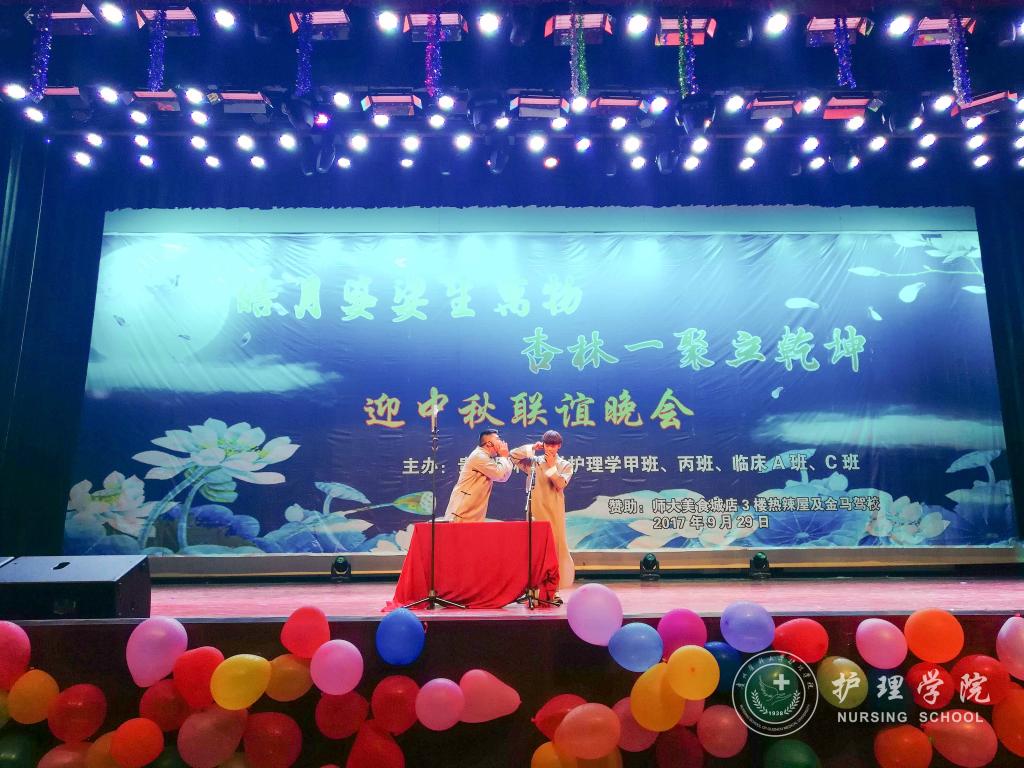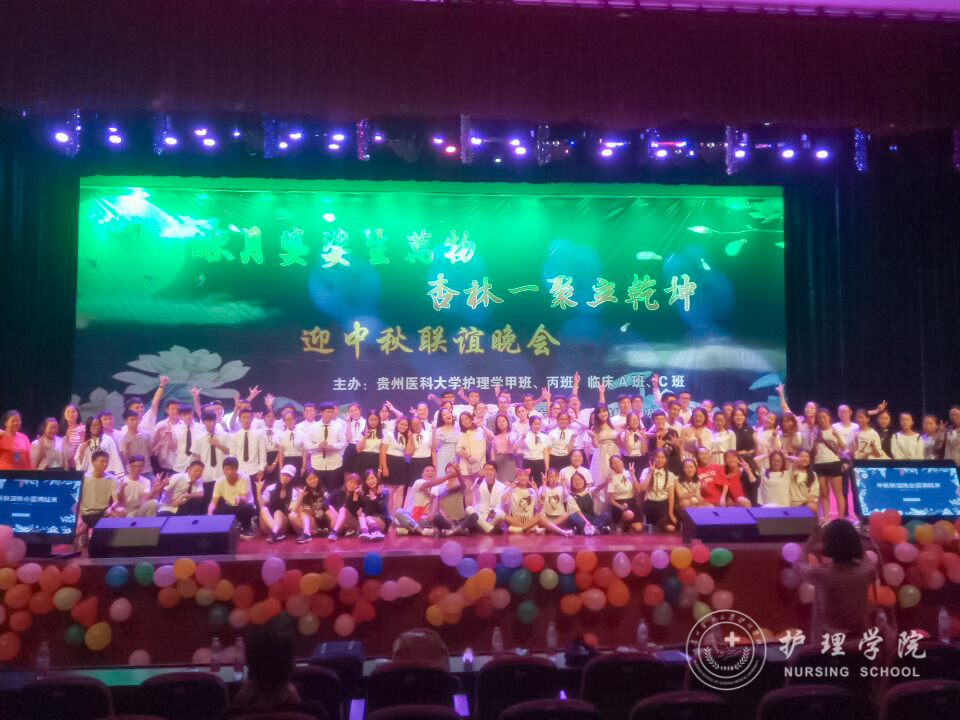 为了增强同学间的友谊,提高集体意识。9月29日晚上,2017级甲班、丙班在花溪校区礼堂与2017级临床A班、C班共同举行了“皓月婆娑生万物,杏林一聚立乾坤”迎中秋联谊晚会。本次晚会邀请了外国语公司何晓涛老师、心理健康中心彭彪老师、基础医公司辅导员苗建峰老师、TapTap辅导员王晓玲、毕丽、李颖和马景瑶老师以及老生代表参加。晚会由2017级护理甲班杨一城、崔玉琪、临床A班唐永豪、封雪晴四位同学主持。