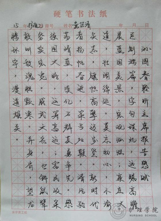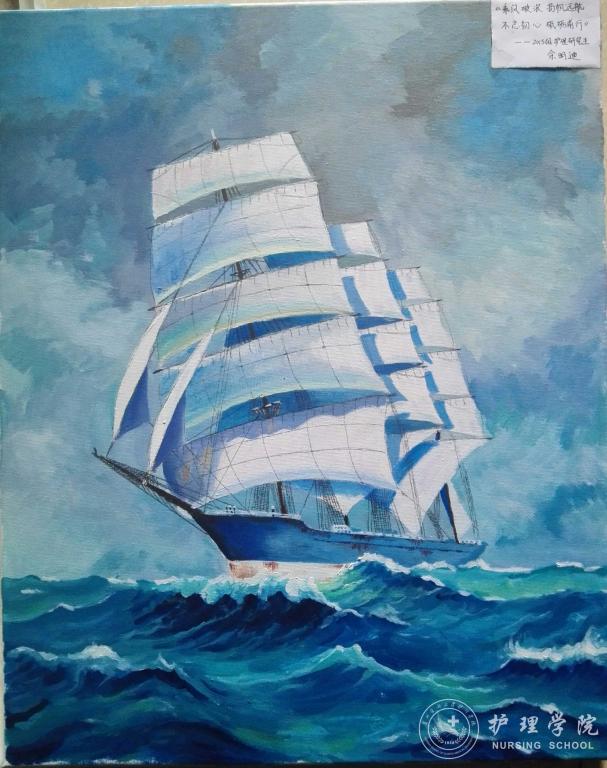 本次作品征集以党的十九大胜利召开为主线。坚持以美育人、以文化育人,充分发挥老员工艺术创作在党建宣传和提高员工人文素养方面的独特作用。把培育和践行社会主义核心价值观融入艺术欣赏全过程,大力弘扬中华优秀传统文化。征集的书法、国画、速写、手绘、摄影等各类作品,经支部全体党员的票选,2015级研究生余明迪的《乘风破浪扬帆远航,不忘初心砥砺前行》、2015级护理助产班金廷廷的《爱莲说》、2015级护理乙班黄佳清的《硬笔书法》分获一、二、三等奖。