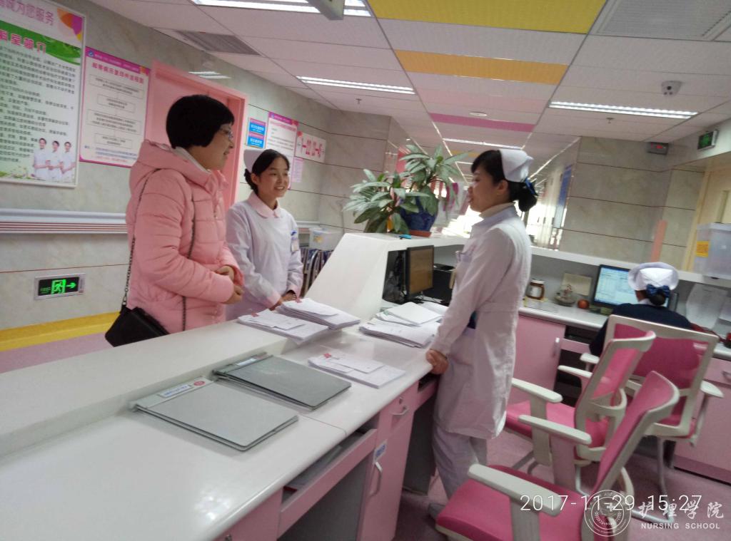 在医院实习生组长的陪同下,分别走访了肿瘤医院护理部、胸部肿瘤科、外科二病区和妇幼保健院妇科乳腺外科、妇科内分泌不孕症科等临床科室,毕业班辅导员与走访科室的护士长、带教老师、实习同学深入交谈,从不同层次了解实习教学、员工管理以及专业操作中存在的问题。通过交流了解,公司实习生在附属医院的表现得到了充分肯定,受到好评。