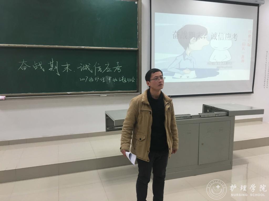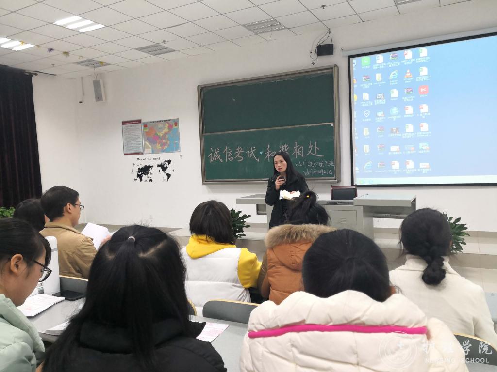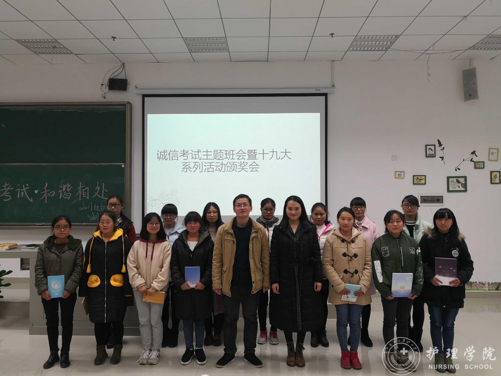12月21日晚,TapTap在南校区7404和7406教室开展诚信考试主题班会暨十九大系列活动颁奖仪式。此次班会由班主任吴俊、王丽,辅导员马景瑶和班级学习委员主讲,2017级护理甲班、乙班全体同学参加,班会由各班班长主持。