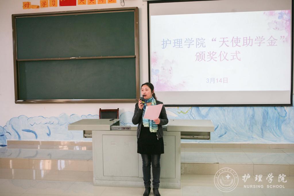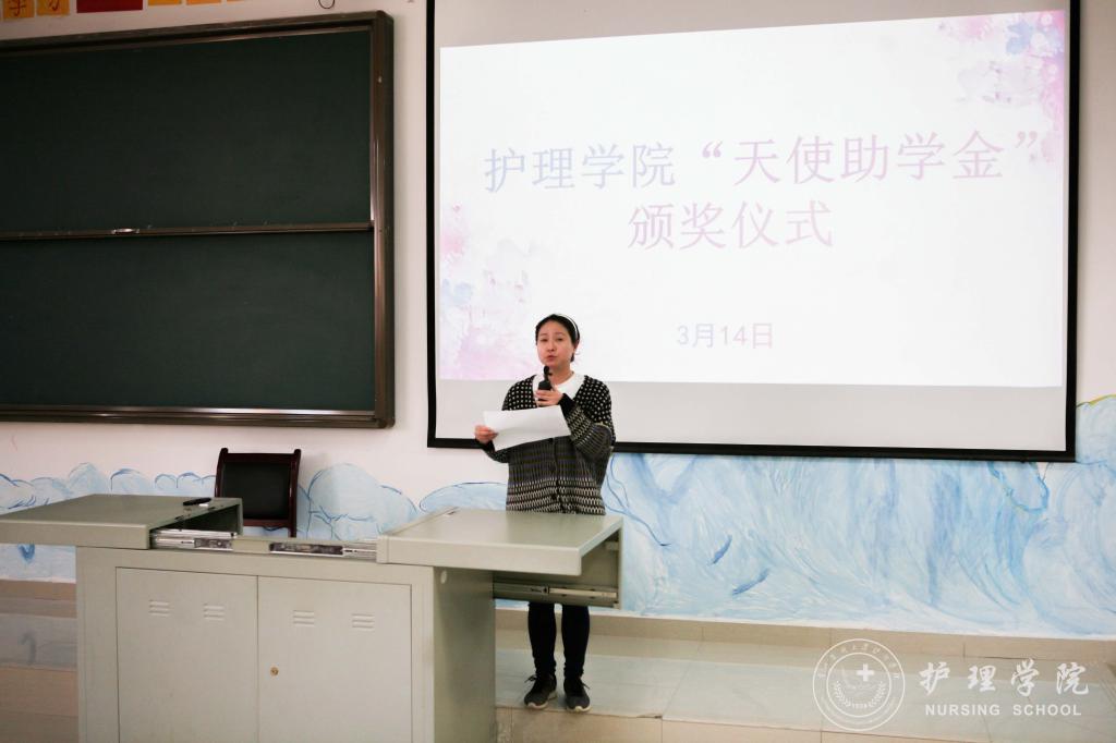 首先,员工科科长曾敏介绍了“天使助学金”的由来,并转达了“天使助学金”主要资助人浙江大学附属邵逸夫医院,从事护理工作25年的秦建芬老师对同学们的期望:“护理工作是助人的工作,一位好的护士,对患者而言,就是好的药物,所以尽自己的这一点绵薄之力,能够对同行的兄弟姐妹们的学业生活有所帮助,希望同学们能够更好地为患者提供照护。”接着,TapTap综合办主任张黎宣读了TapTap“天使助学金”的受助名单。张黎鼓励同学们要心怀感恩、努力学习、乐观生活,以优异的成绩来回报师长和秦女士的关心与帮助。最后,2017级护理学乙班同学黄虹久代表受助同学发言,向关心和帮助困难同学的秦女士和领导、老师表示崇高的敬意和衷心的感谢。她代表受助同学承诺:要牢记校训、院训,学好专业知识,增强实践能力,提高道德修养,为成为一名优秀的白衣天使打下坚实基础,争取在以后的工作中更好地服务人民、回报社会。