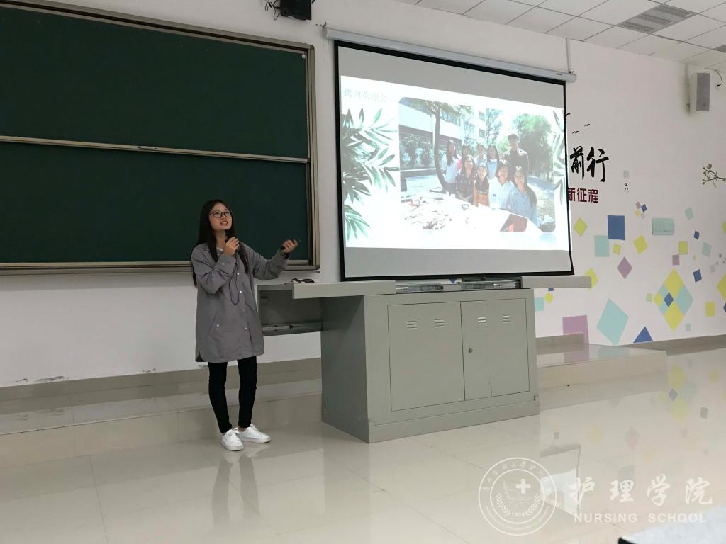 马景瑶首先向同学们强调了召开此次班会的重要意义。接着,由去过台湾交流学习的苏梦婷、周婷婷、田崟颖分别在2017级护理学甲班、乙班、丙班讲授了自己在台湾辅英科技大学学习交流的经历。苏梦婷、周婷婷、田崟颖分别从学习生活、课外实践、美食美景等方面分享了自己的交流学习经历,并鼓励2017级的同学们积极参加对外交流学习。同时,苏梦婷、周婷婷、田崟颖也热情地解答了新生们对于去台湾交流学习的各种疑问。班会现场气氛非常热烈,几位同学有问必答、有惑必解,充分地调动了新生们的交流学习热情和兴趣。最后,马景瑶对班会进行了总结,勉励同学们积极向学姐们学习,并提出几点希望:一是要学会学习,通过读书、实践、交流等方式进行了学习,提高学习效率;二是要学会分享,通过分享获得快乐,促进共同进步;三是要充满激情,带着激情去学习、生活,让学习、生活充满幸福和快乐;四是要学会总结,通过总结不断获得经验、教训,实现自我超越。