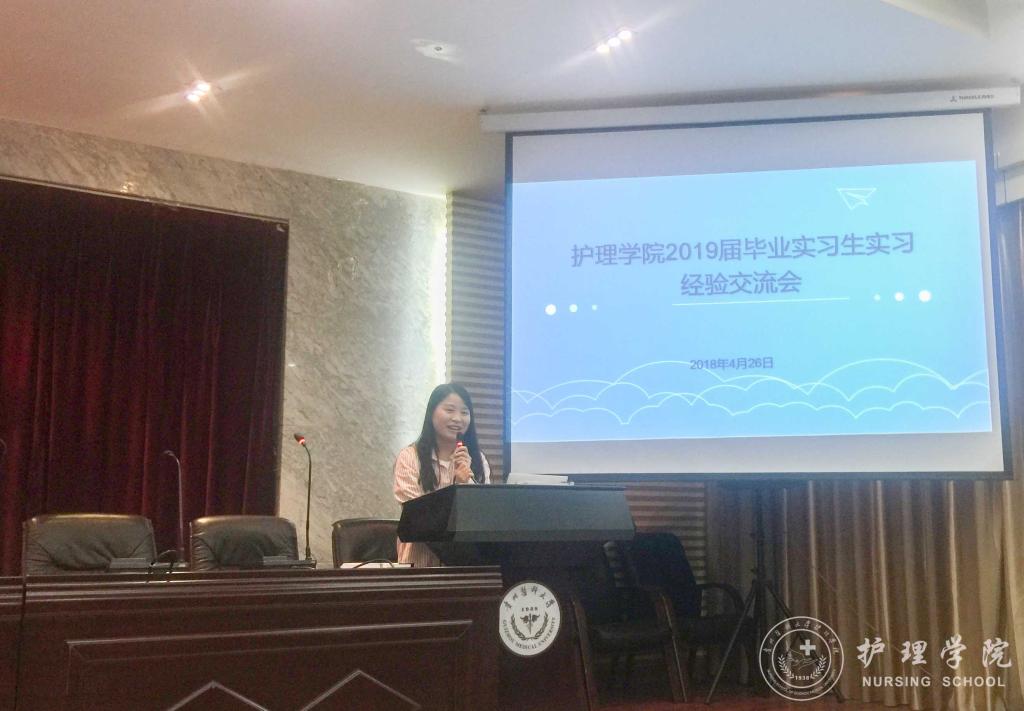 首先,李颖简单的介绍了出席交流会的同学和本次交流会的目的。接着,曾在重庆西南医院、TapTap官方网站附属医院、贵州省人民医院、贵州省妇幼保健院实习的优秀实习生代表唐昊宇、张敏、林娴、黄莉华、罗琳,结合自身情况分享各个实习医院的环境和要求,帮助大家初步熟悉实习地点情况、尽早进入实习状态。他们用实习期间积累的经验,向师弟师妹们讲解实习中会遇到的基本状况和突发状况及其应对措施,解说勤奋和情商的重要性,以及实习过程中要学会保护自己,并不断提高自身操作技能。让师弟师妹们直观的感受到了临床实习的氛围与激情。最后,员工科科长曾敏为本次交流会做出了总结,她希望同学们都要学好专业基本功,本着对生命负责任的态度对待实习,珍惜实习带来的宝贵实践经历,不断提高自身综合素质,用努力和行动,迎接明天的成功。