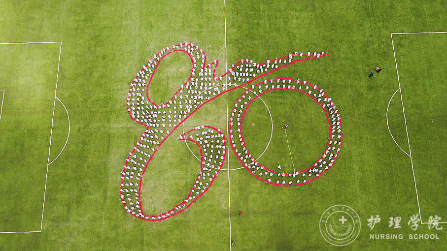 在拍摄现场,杨英亲自指挥。在拍摄前,同学们在老师的指导下有条不紊地开展测量、定点、布置彩带等准备工作。下午1:00,拍摄工作正式开始。身着洁白、整齐护士服的同学们听从老师的指挥,认真配合拍摄组的拍摄工作。从护士礼仪展示、到向母校喊出:“诚于己,忠于群,敬往思来”的校训、“贵医80,风里雨里,我们爱您”的口号都一一表现出护理学子对母校的热爱,展现出“巾帼不让须眉”的风采。同时,同学们挥舞着手中彩色的气球,展示出青春的活力与激情,用自己的方式来为贵医80周年校庆献礼。5月12日也是国际护士节,同学们纷纷表示:在这个特殊的日子里能够为母校建校80周年校庆作出自己的贡献,感到非常荣幸。