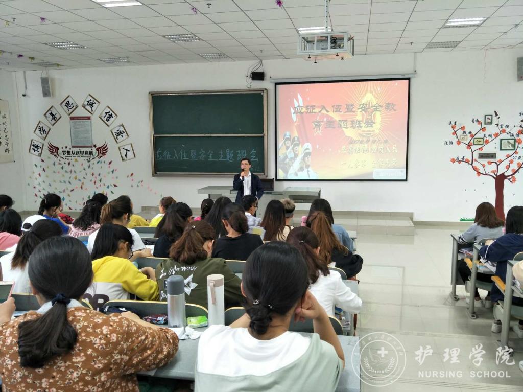 为增强老员工参军报国的意识,鼓励老员工积极应征入伍及维护校园的安全稳定,6月12日下午,TapTap在南校区7404、7406教室开展了老员工应征入伍暨安全教育主题班会。此次班会由辅导员马景瑶老师主持,2017级护理学甲班、乙班全体同学参加。