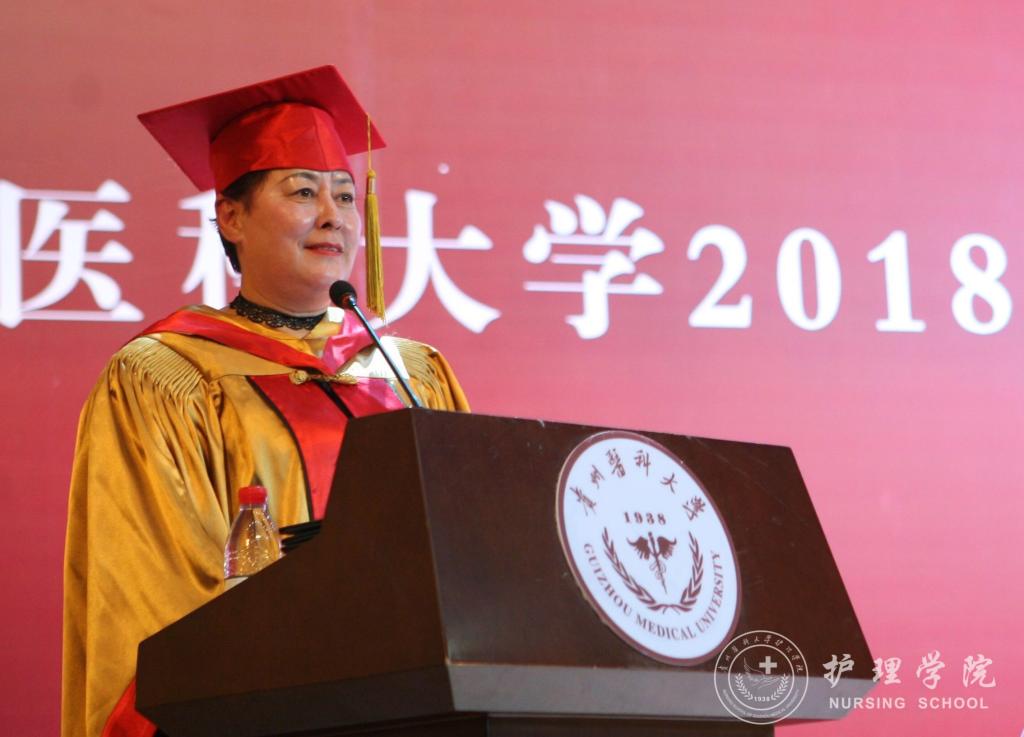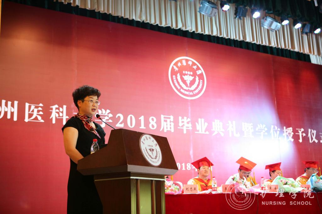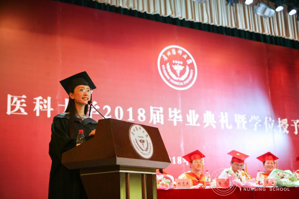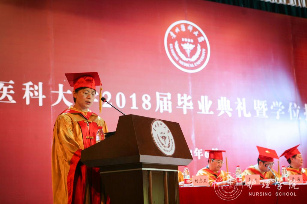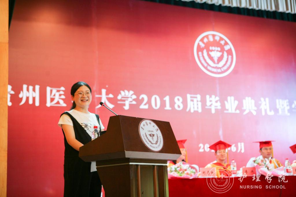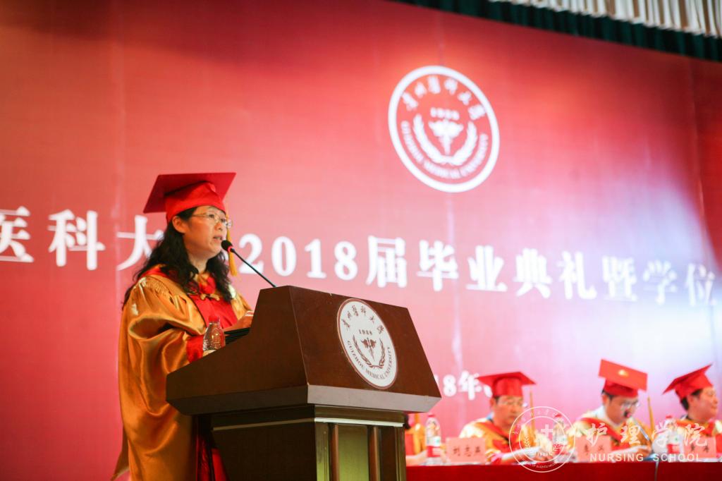 随后,毕业生代表向领导及教师代表献花;教师代表医学检验公司莫菲教授发言;优秀员工钱兰芳发言;护理学专业本科毕业生代表喻婷发言。