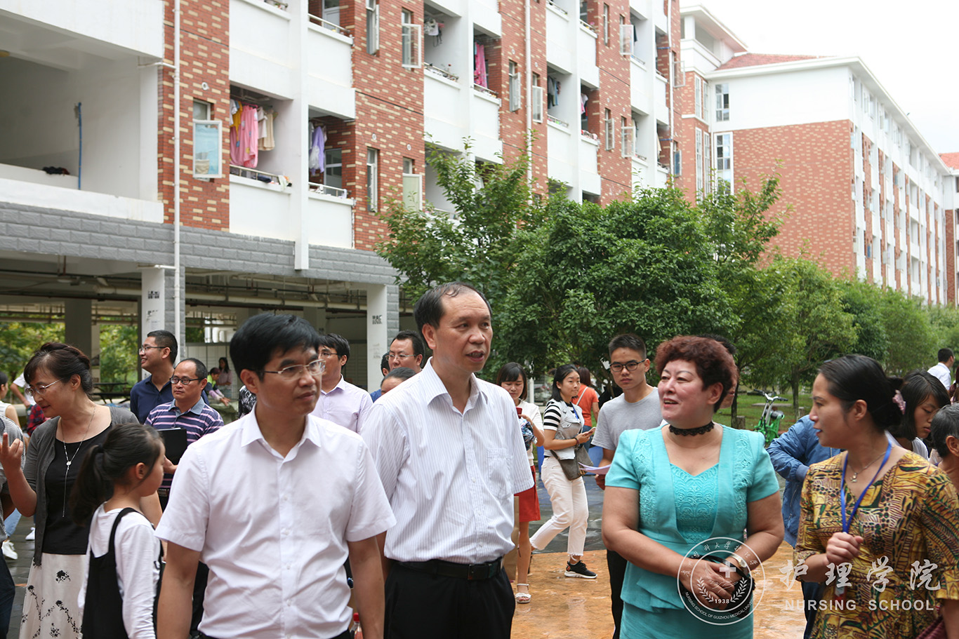 迎新工作接近尾声之际,杨英带领员工科科长曾敏、新生辅导员以及员工会干部前往新生宿舍看望2018级的同学们,杨英鼓励同学们要始终保持自信乐观心态,尽快适应大公司园生活,认真学习,热爱护理专业。