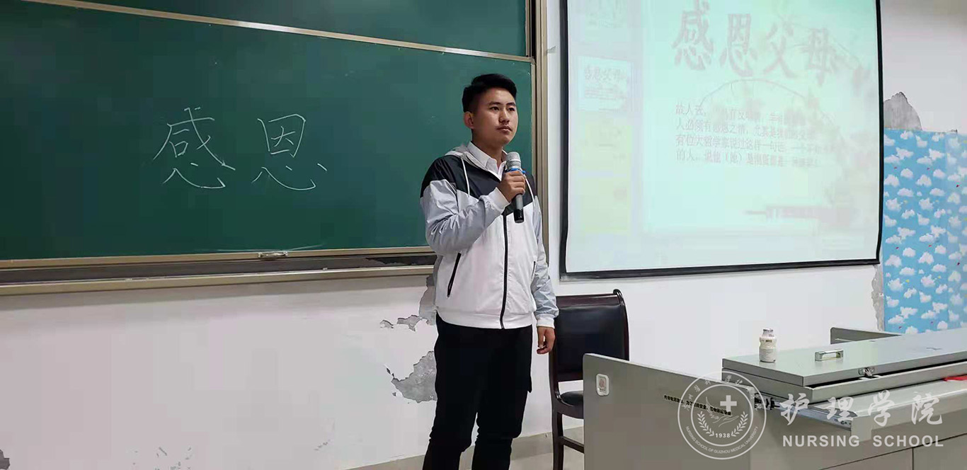 为提高同学们的人文素养,培养健康心理素质,10月8日晚上,2018级护理学丙班在南校区1302教室召开了“感恩”主题班会,此次班会由班主任罗晶老师主持,全班同学参加。