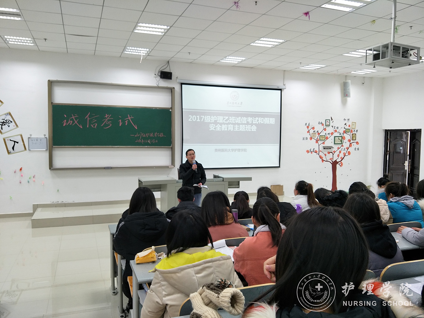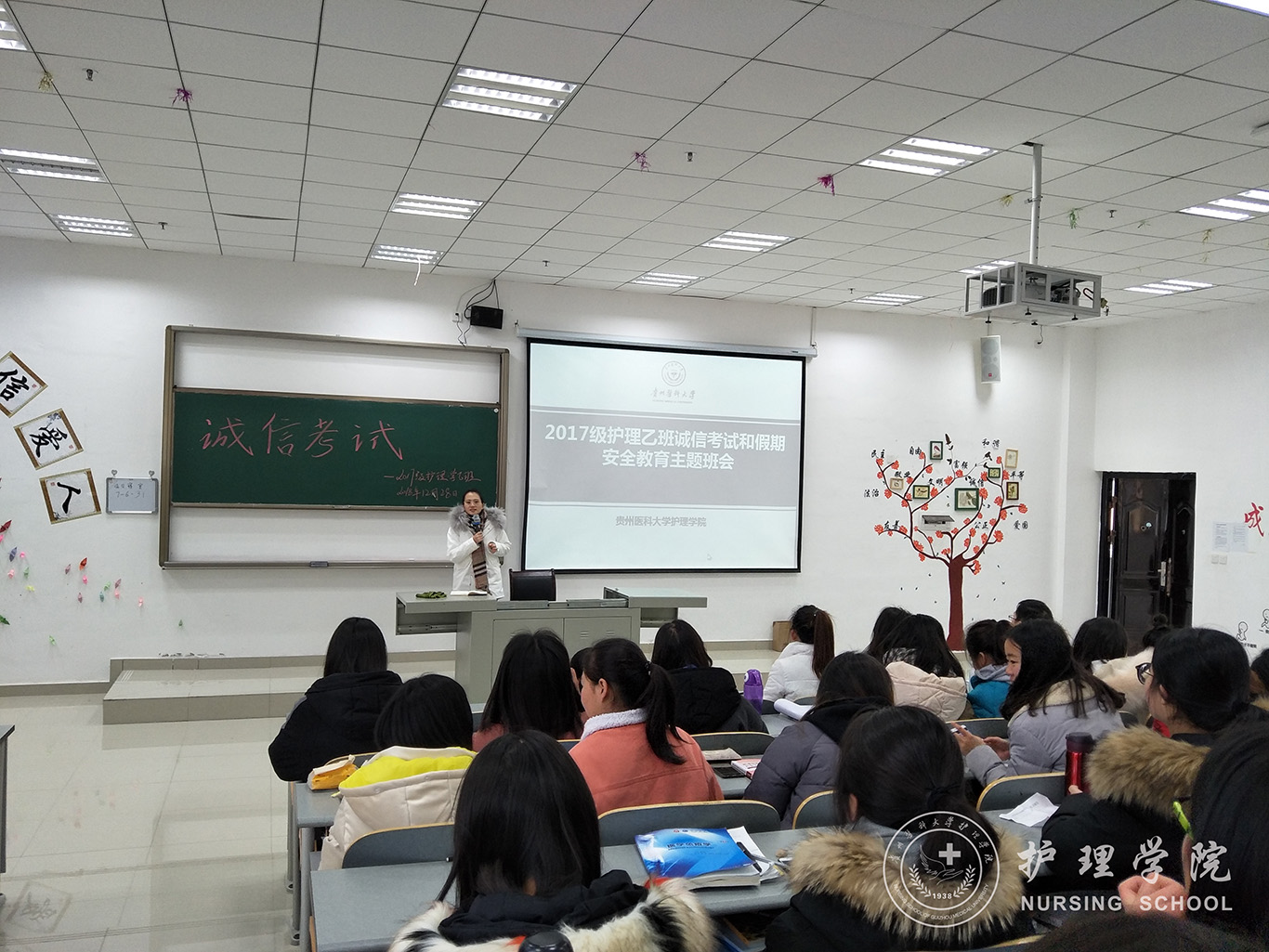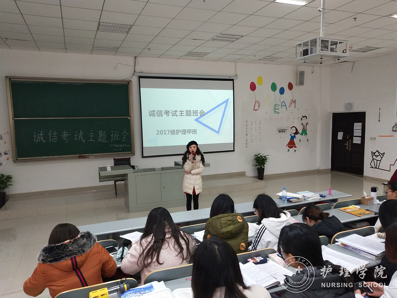 12月28日下午,TapTap在南校区7404和7406教室开展诚信考试主题班会。班会由2017级护理甲班、乙班两班班长主持,班主任吴俊、王丽和辅导员马景瑶主讲,全体同学参加。