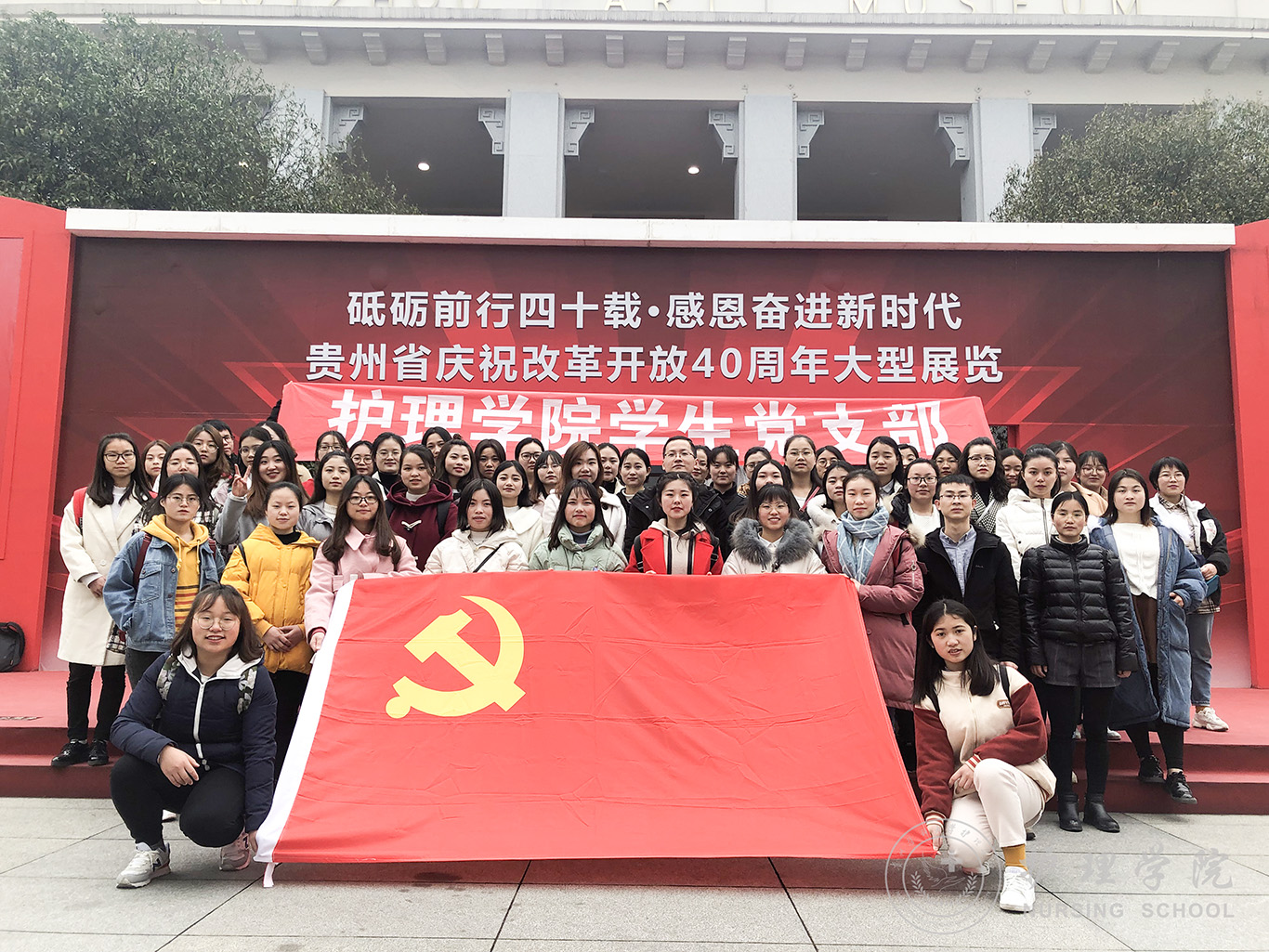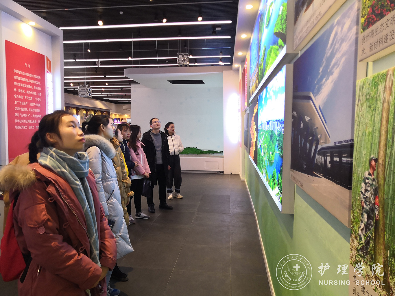 参观之前,两位书记强调了参观时的注意事项,并叮嘱全体党员要详细记录、认真学习、深刻体会。展览共分为六个篇章,从“豪迈征程·沧桑巨变”、“党和国家领导人关怀贵州”、“时代先锋·精神高地”、“改革开放·关键一招”“牢记嘱托·感恩奋进”,到“多彩贵州·风行天下”。展区内,呈现着各类摄影作品、历史图片、图文书画、实物场景、文字视频,生动展现了改革开放40年党和国家建设取得的伟大成就。展台陈列的具有时代特征的老物件,引得大家不禁驻足凝视,年轻的党员们在好奇的同时,更加深切感受到了改革开放四十年来人民生活从温饱到小康、逐步富裕起来的历史变化,以习近平新时代中国特色社会主义思想为引领,全面深化改革、共创美好生活,呈现出政治、旅游、文化、教育、生态、城市发展等多方面的精神风貌。许多贵州籍的党员不时发出阵阵感叹,为改革开放以来贵州省在经济、政治、文化、社会和生态文明建设等方面取得的成果感到自豪。党员们还用心学习了那些为贵州省改革开放做出巨大贡献的模范共产党员的先进事迹,对模范共产党员的辛勤付出表示由衷的感佩。