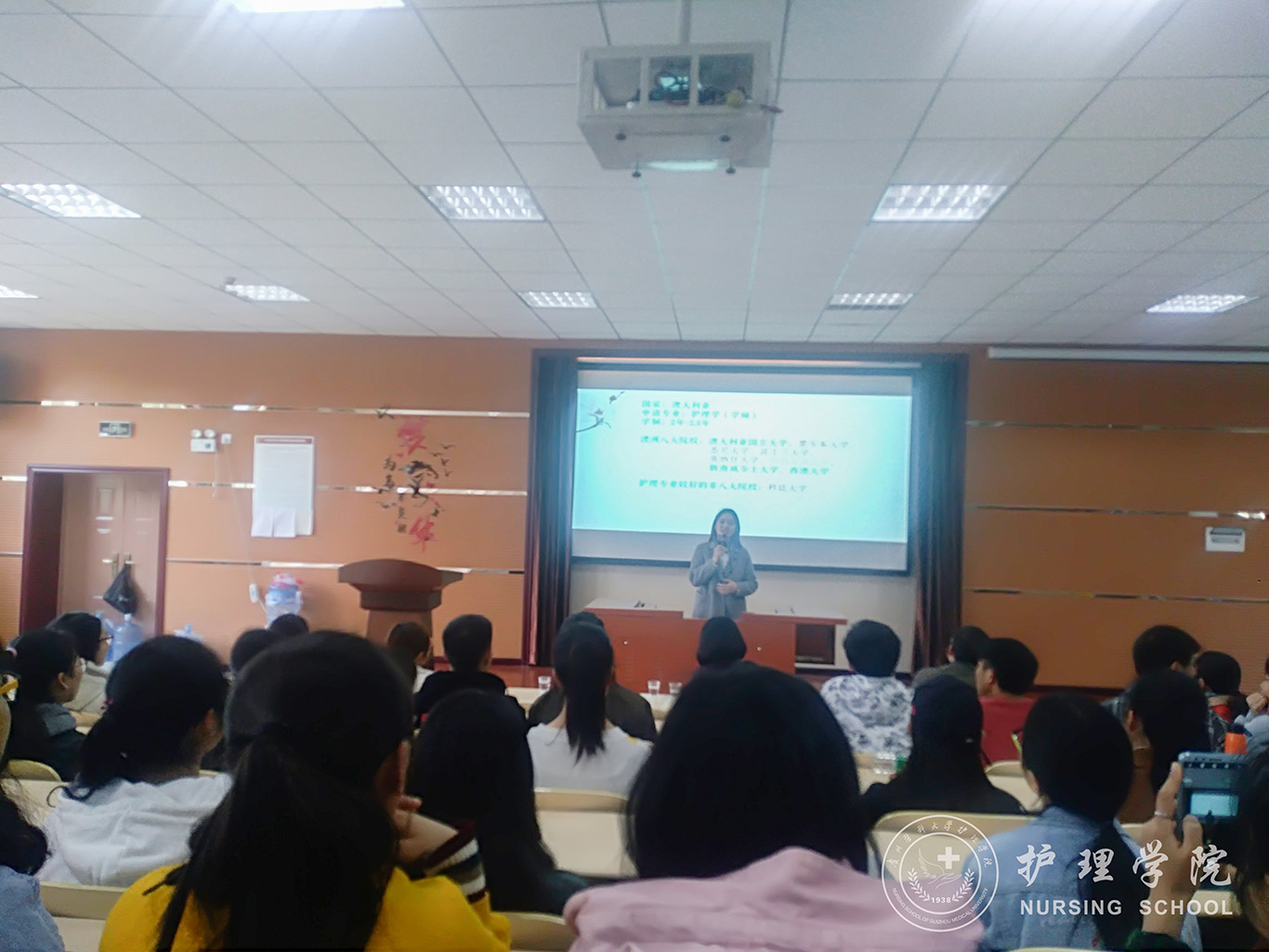 会上,徐琨老师给同学们讲述了在泰国宋卡王子大学攻读博士的经历与感受,强调了学习气氛的重要性,并鼓励同学们努力提升自己的专业能力和外语水平。已经被澳大利亚昆士兰大学录取护理学硕士的刘玉凤员工分别从出国留学的录取要求、资料准备、经济要求等方面为同学们进行了讲解。即将赴美国海格斯大学攻读的罗琳员工给大家分享了从“学渣”逆袭到考取硕士的经历。精彩的分享引发了现场的热烈讨论,参会的师生均感到通过本次大会收益颇丰,为他们人生规划增加了一个方向。