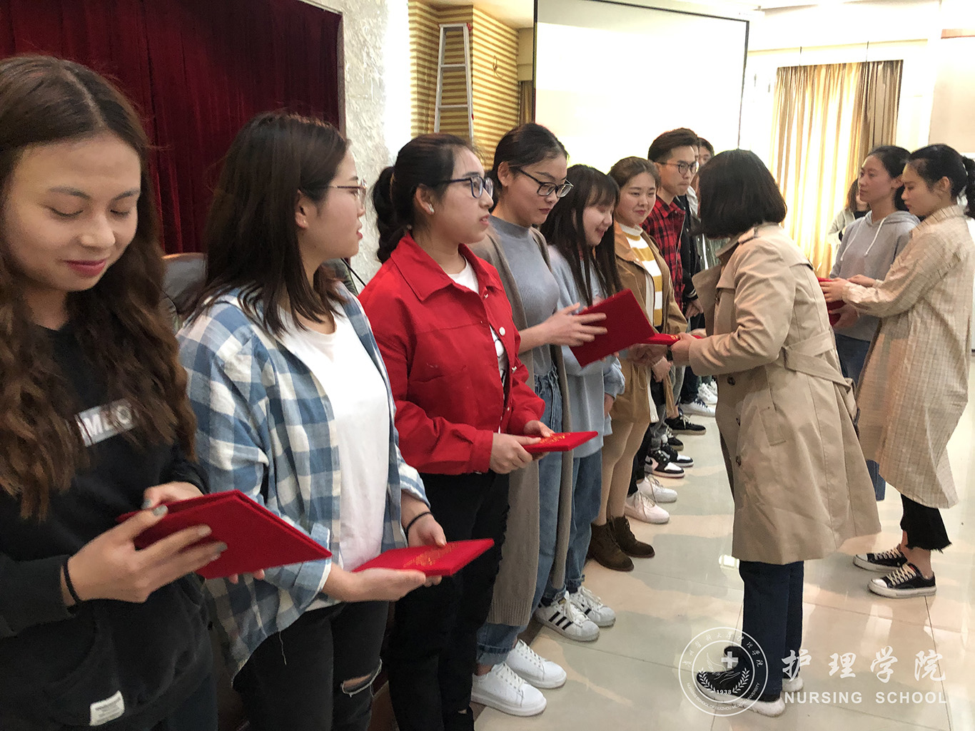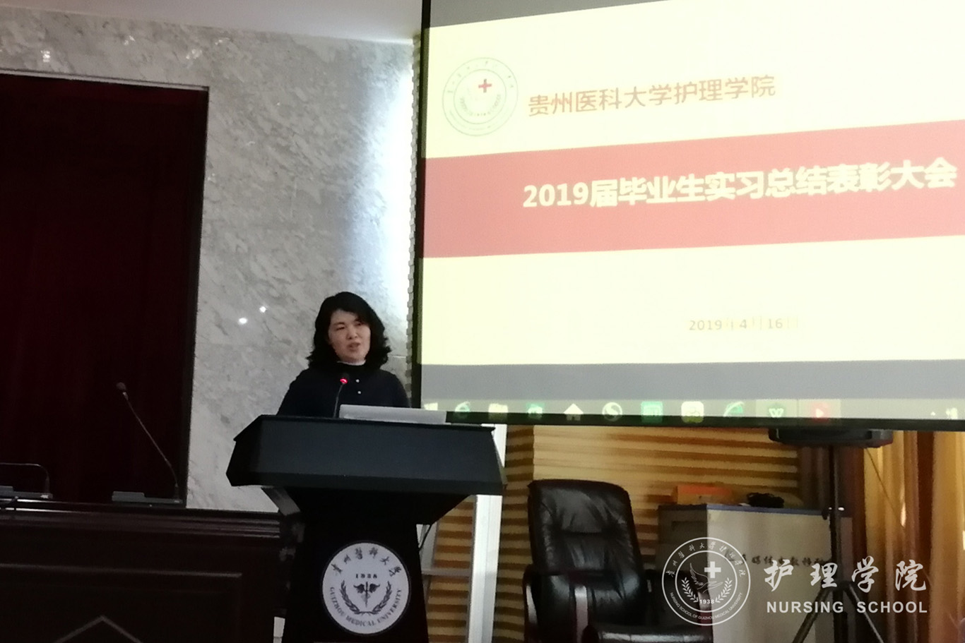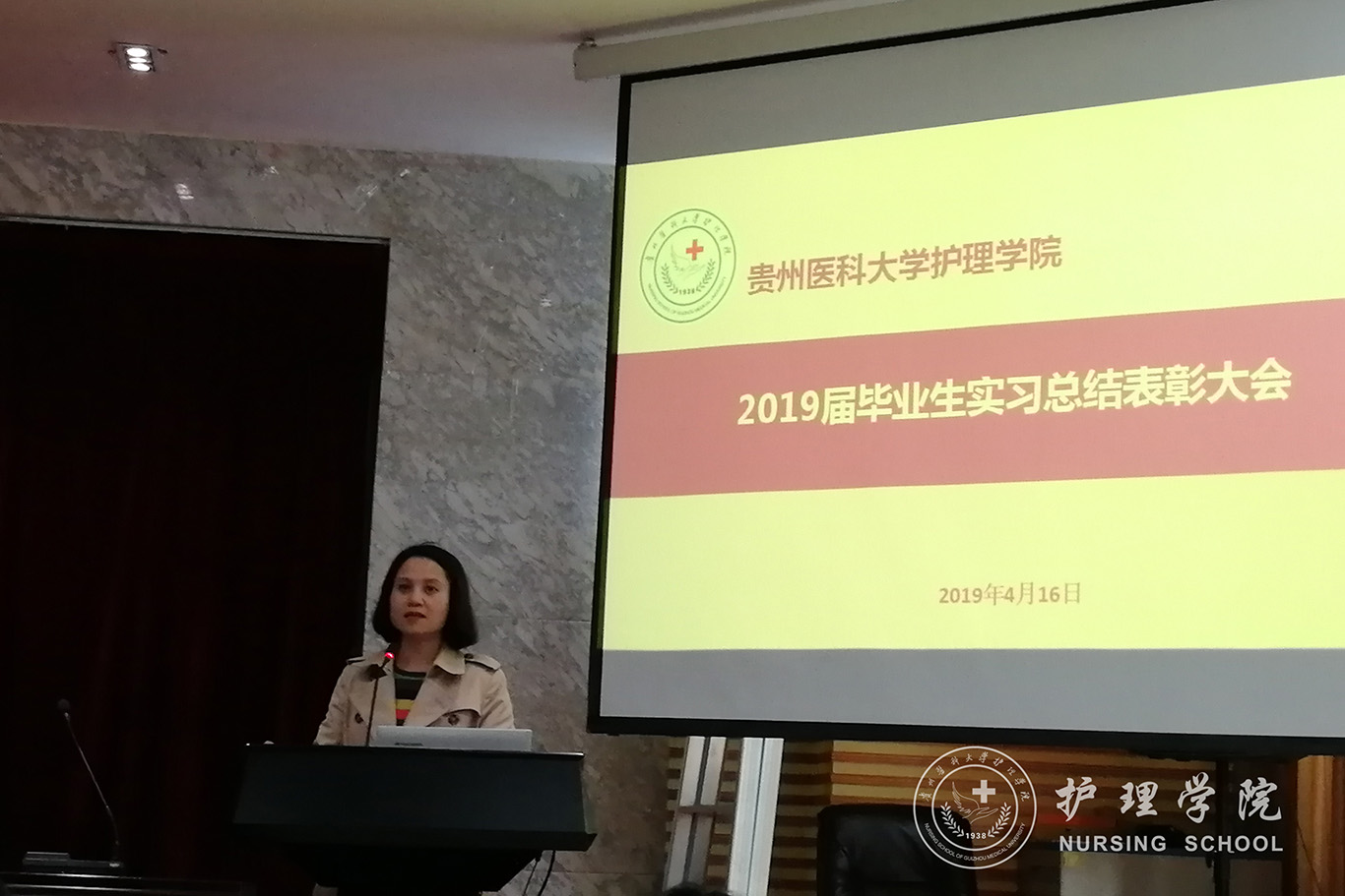 4月16日,2019届毕业生实习总结表彰大会在北校区道德讲堂召开。公司党委书记杨英、副书记王秀红、副经理刘志燕、员工科科长曾敏、毕业生辅导员、班主任和全体毕业生参加了此次活动。会议由内科护理学教研室副主任晏家芳主持。