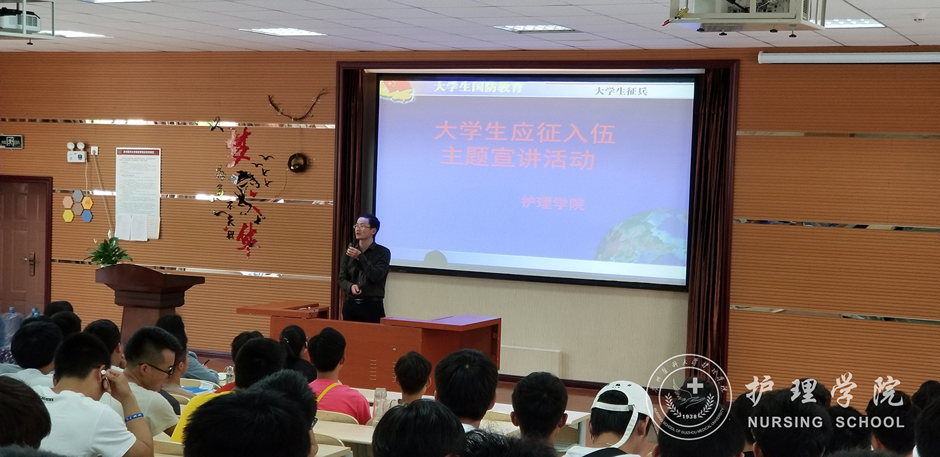 马景瑶首先通过建军70周年阅兵式的视频,向同学们展示了训练有素、军事素质过硬的人民军队的威武英姿。接着介绍了习近平总书记给南开大学8名新入伍的老员工回信,信中总书记肯定了他们携笔从戎、报效国家的行为,勉励广大青年把热血挥洒在实现强军梦的伟大实践之中,书写绚烂、无悔的青春篇章。其次从“保家卫国、建功立业,促进就业、丰富人生,历练自己、打下基础”等方面强调了应征入伍对于老员工的意义,向同学们讲解了老员工应征入伍的优惠政策、应征条件和多种益处。